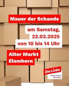 Im Rahmen der „Internationalen Wochen gegen Rassismus“ vom 17. bis 30. März 2025 machen wir auf rassistische und neonazistische Aussagen aus der rechten Ecke der Gesellschaft, aber auch auf sogenannten alltagsrassistische Sprüche aufmerksam. Pappkartons werden damit beschrieben und gestalten eine „Mauer der Schande“. nach. Die wird dann symbolisch eingerissen.